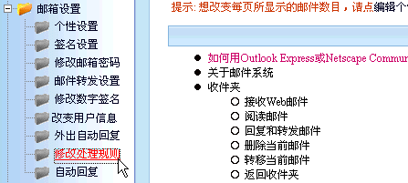 1> 登錄郵箱進入首頁,點擊"郵箱設置"下的"修改處理規則"。