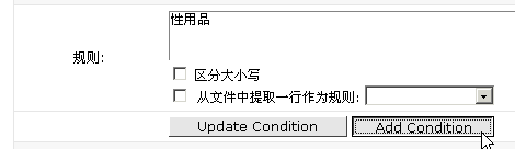 4> 選擇好范圍后,進行制定規則。填入"性用品"并點"Add Condition"