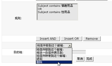 5> 由于還要同時拒絕含有"情趣用品"標題的郵件,因此點擊"insert Or"